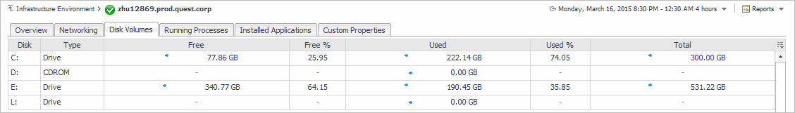 The networking tab is populated by four different pre-defined Foglight for SNMP network monitors.