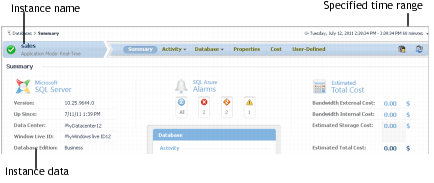 Viewing the Foglight for SQL Azure Summary