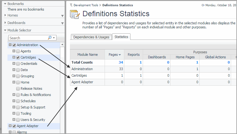 Viewing Module Definition Statistics
