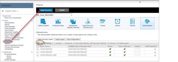 To collect Rapid Recovery Server data in Foglight, create a Rapid Recovery agent in Foglight first. To create a Rapid Recovery agent, go to Homes > Protection > Rapid Recovery > Administration.