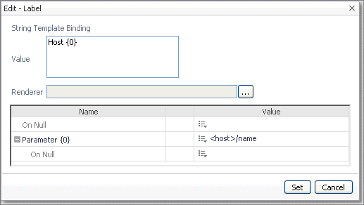 Most types of bindings have parameters. These are placeholders nested within the binding that are also evaluated at run time. An example is a String Template binding set to Host: {0}. In this case Host: is a fixed string, while {0} is a reference to a parameter that evaluates to the name of the host server by configuring that association to a particular dynamic context at the time when the String Template binding is being defined. Each description of the binding type explains how to use parameters.