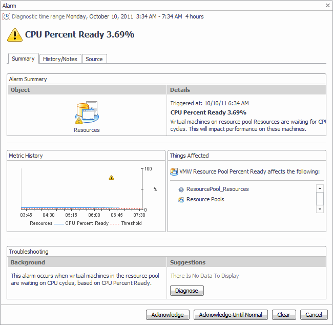 On the VMware Environment dashboard, on the Monitoring tab, in the Virtual Environment Overview, select the Resource Pools tile. |