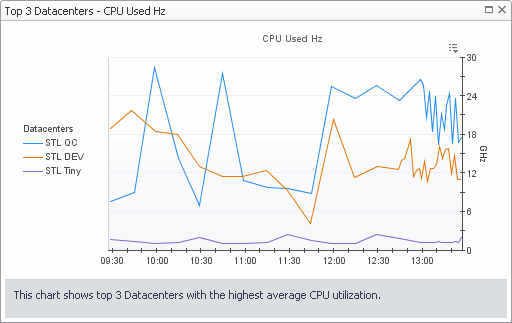 Used Hz (in the graph). Displays the Top 3 Datacenters -CPU Used Hz dialog box.