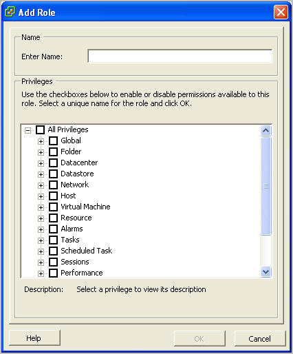 Configure these privileges on the Virtual Center using the VMware® Virtual Infrastructure Client.