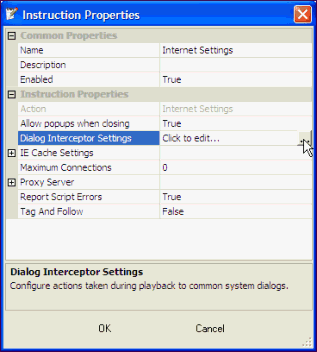 Click the Dialog Interceptor Settings Click to edit button. |