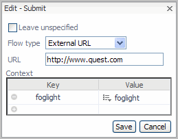 External URL lets you set any URL address as the link target. If you set the external URL to the string {url} the system looks in the context for a key URL and uses its value as the URL to go to. This is useful in conjunction with a template allowing you to customize the URL with runtime data from Foglight.