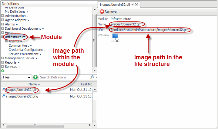 When you add an image file to the module, its path is displayed in the Module Contents pane and in the image file properties: