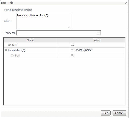 In the Edit - Title dialog box that appears, in the Value box, type Memory Utilization for {0}.