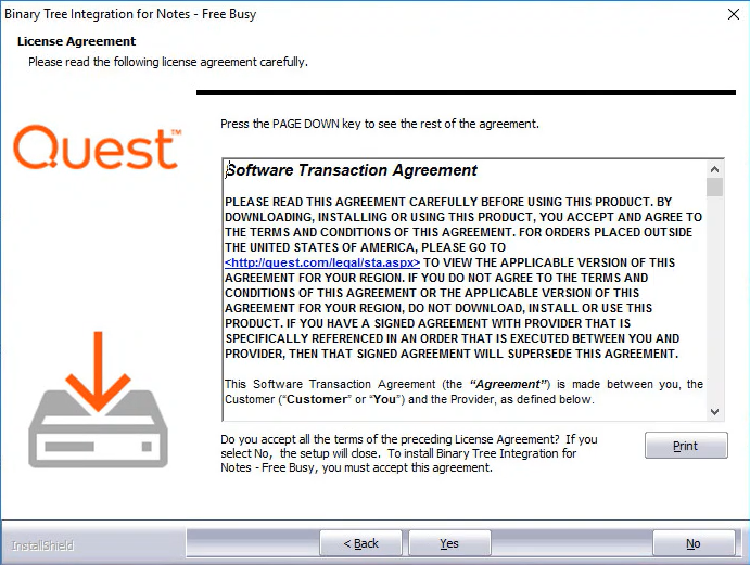 1. Review the Software License Agreement and if you agree, click Yes to continue:
