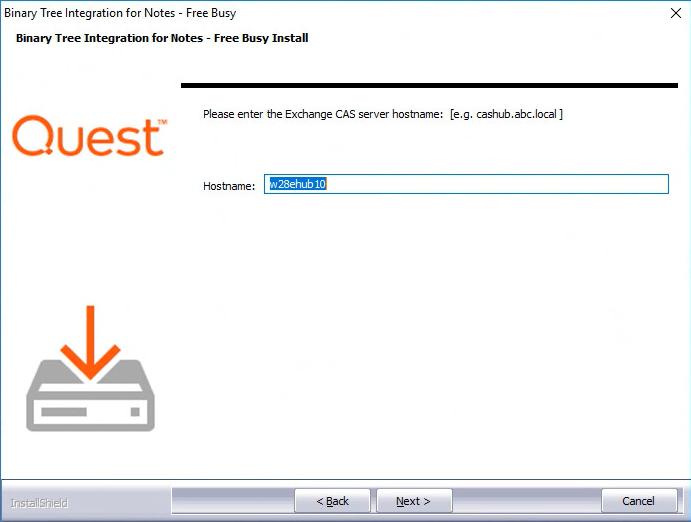 1. On the first screen, enter the Fully Qualified Domain Name (FDQN) of the Exchange CAS server hostname and click Next: