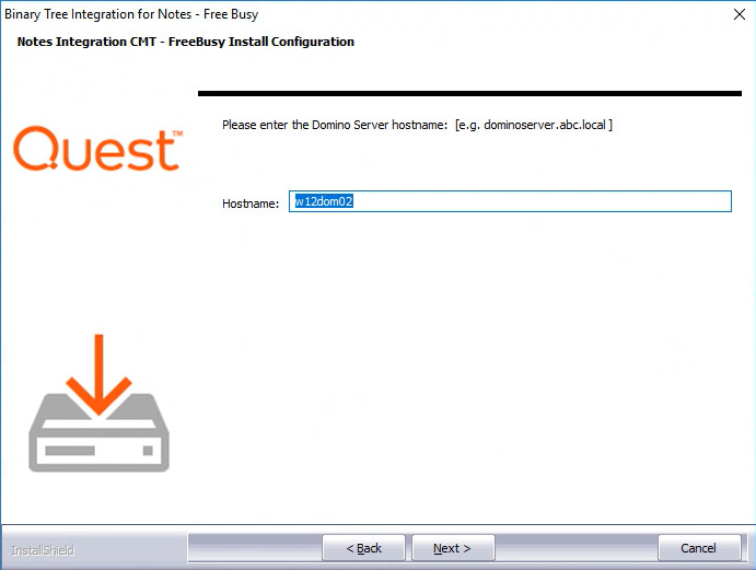 2. Enter the DNS name of the Domino Server and click Next: