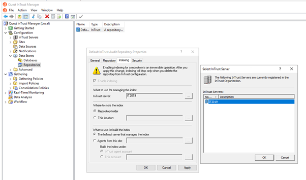 On the Indexing tab, select InTrust Server and click OK (Attached screenshot for reference)