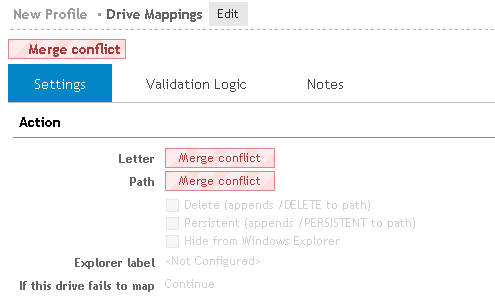 If multiple elements are selected, the fields that contain different data will display a red Merge Conflict warning. Click the Back button to return to the View pane.