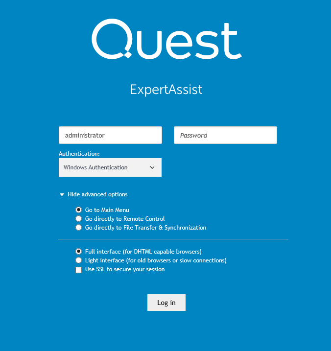 After entering the URL into your browser and pressing enter, the ExpertAssist login screen will be displayed.
