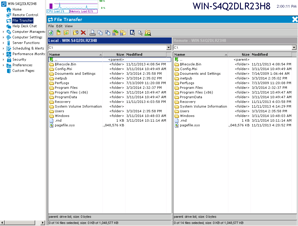 With ExpertAssist File Transfer, you can quickly and securely transfer files between the local and the remote computer. All data transferred between the two computers is compressed and encrypted by the Java applet, so you can be sure that it is secure.