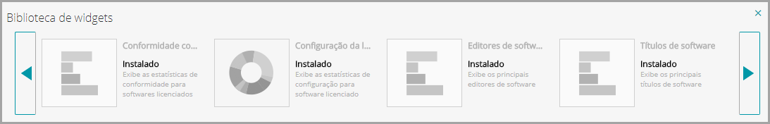 Esse widget é apenas informativo e a solução não impõe a conformidade com licenças. Por exemplo, a solução não impede a instalação de software em dispositivos gerenciados por agente caso uma licença tenha expirado ou esteja fora de conformidade por qualquer outro motivo.