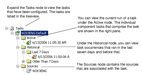 When you select a task in the treeview, it appears in the Task Summary view in the right pane. You can expand the task to view the task status and related information in the Task Activity view.