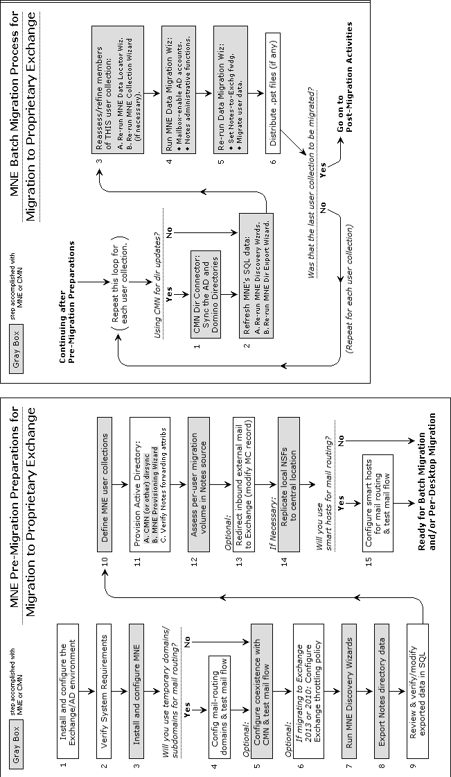 The process instructions are also meant to serve as summary checklists so they do not include the operational details and screen-by-screen field notes for the Migrator for Notes to Exchange component applications. Many steps in these procedures refer to those details in particular chapters and sections of the Migrator for Notes to Exchange Administration Guide.
