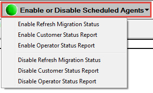 From the Customer Status Reports view, click the Enable Or Disable Scheduled Agents button; the drop-down menu displays four options: