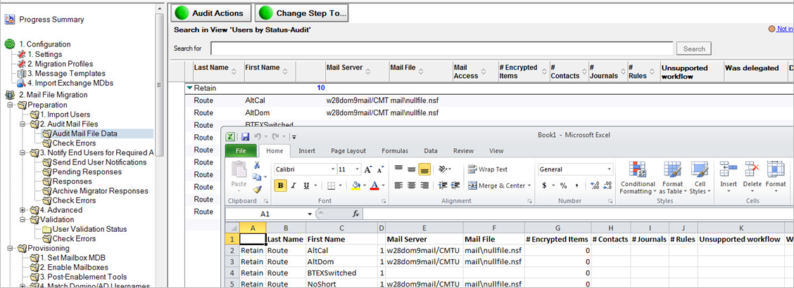 Data on any view within Migrator for Notes can be exported to an Excel spreadsheet.