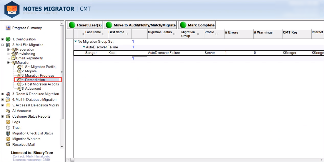 3. For users who have not completed successfully, these will be displayed on the Remediation view.
