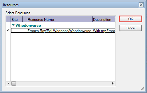 6. A message box appears displaying the resources you selected in the previous step; click OK to continue