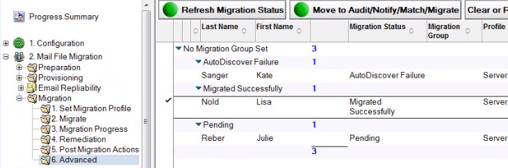 2. Click Move to Audit/Notify/Match/Migrate to move selected users to previous or later stages of migration preparation: