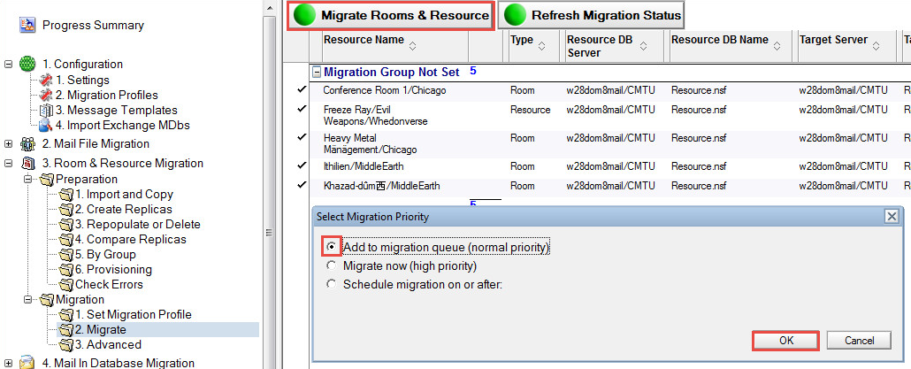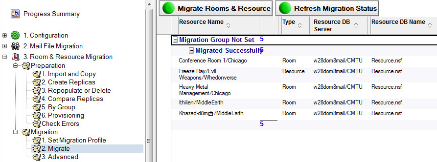 5. Select the room and resources in the Data Pane and click the Migrate Rooms & Resource button