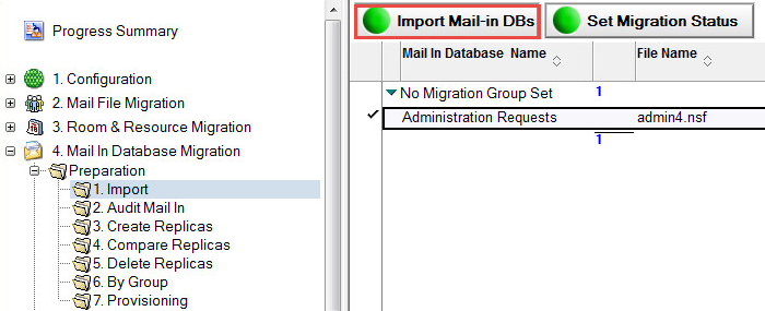 1. Expand Mail In Database Migration | Preparation | Import in the Navigation Pane: