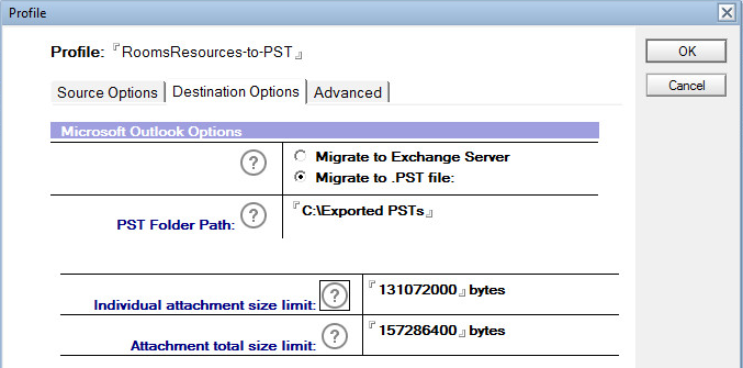 Rooms and resources are migrated successfully to the location specified in the migration profile, for example C:\Exported PSTs folder