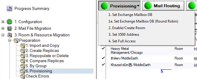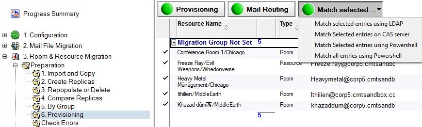 After you have exported Rooms and Resources databases information into Migrator for Notes and matched them with their corresponding AD entries (using the Match selected button in the Import and Copy view), you can prepare the Rooms and Resources for migration.