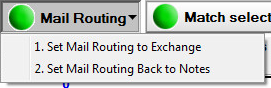 1. Click the Mail Routing button to set mail routing to Exchange or update the AD primary and secondary SMTP; the Set Mail Routing Back to Notes option is for rolling back if needed: