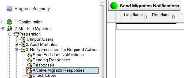 Responses to the Archive Migrator Opt Out option can be seen by clicking Archive Migrator Responses in the Navigation Pane: