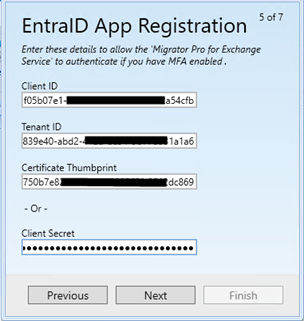 For migration to Microsoft 365, you must register an application with the Microsoft Entra admin center to support Multi-Factor Authentication for PowerShell and Graph calls from Migrator Pro for Exchange. Follow the directions from Microsoft Learn at App-only authentication for unattended scripts in Exchange Online PowerShell and Security & Compliance PowerShell.