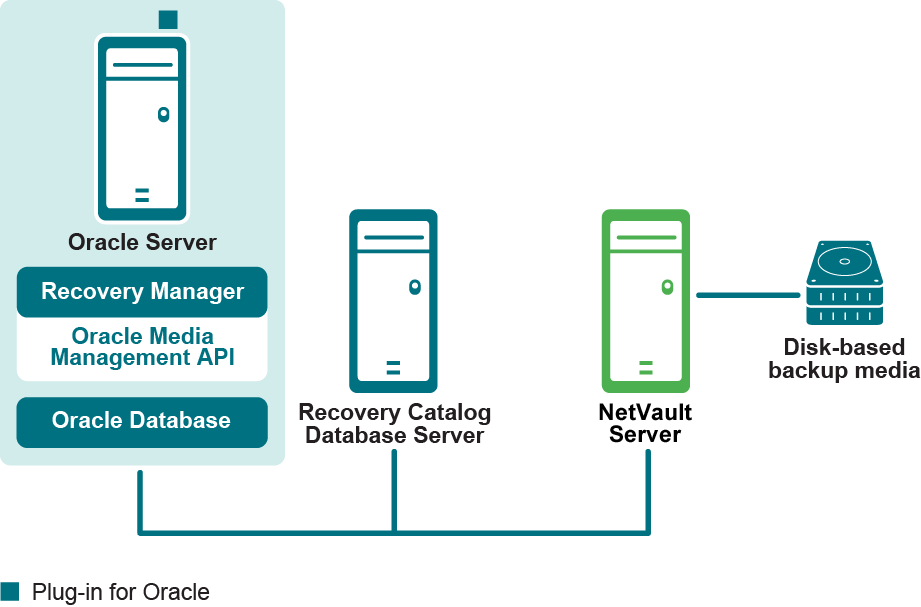 While you can set up a single machine as both the NetVault Server and the Oracle Database Server, that is, all software installation and configuration requirements are performed on a single machine, Quest recommends that these two entities exist on separate machines. For more information on installing Plug‑in for Oracle in a RAC environment, see Installation prerequisites.