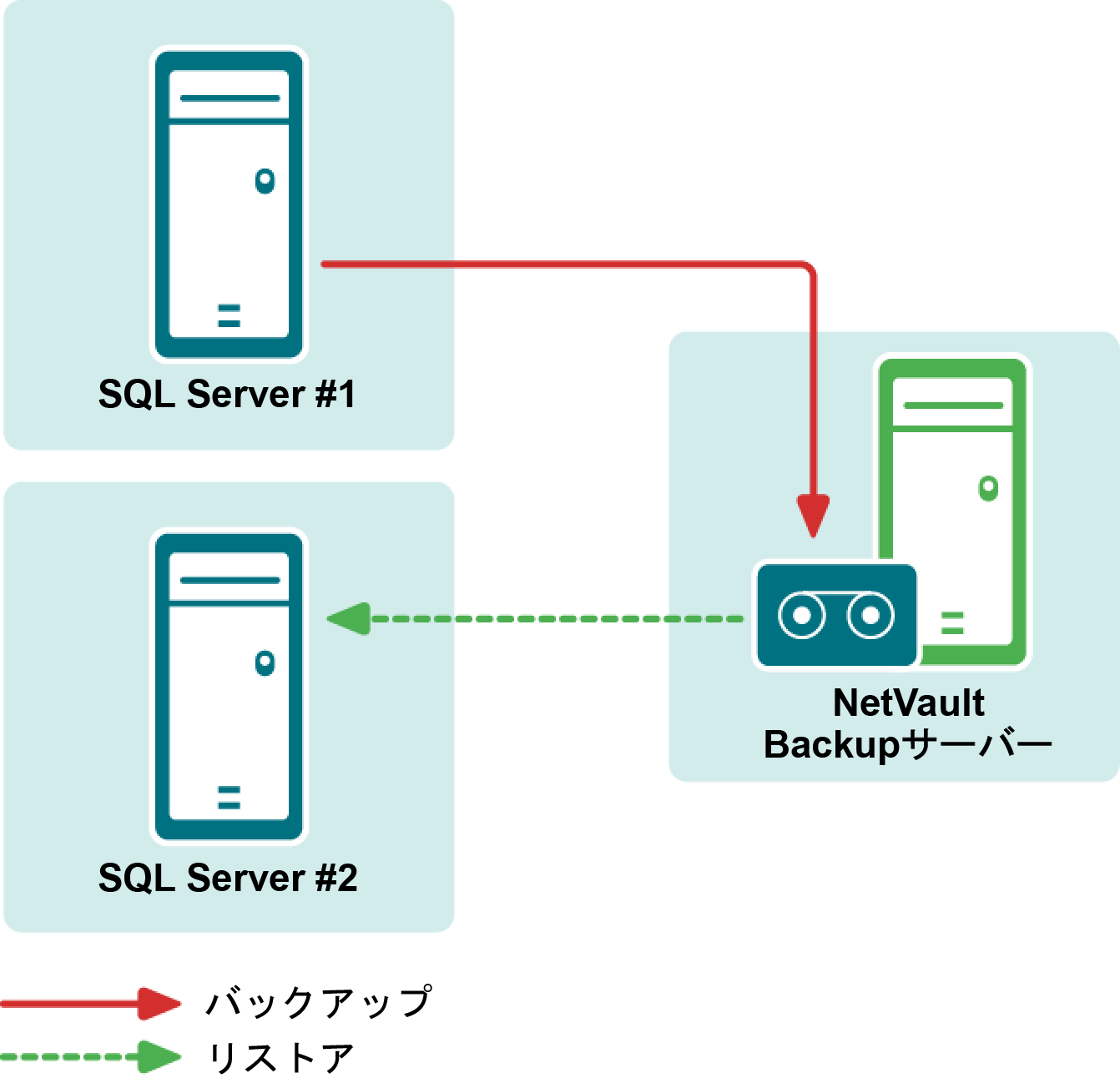 NetVault BackupソフトウェアとPlug‑in for SQL Serverがインストールされていること:新規リストア・ターゲット上で同じバージョンのNetVault Backupソフトウェアとプラグインがインストールされ設定されている必要があります。