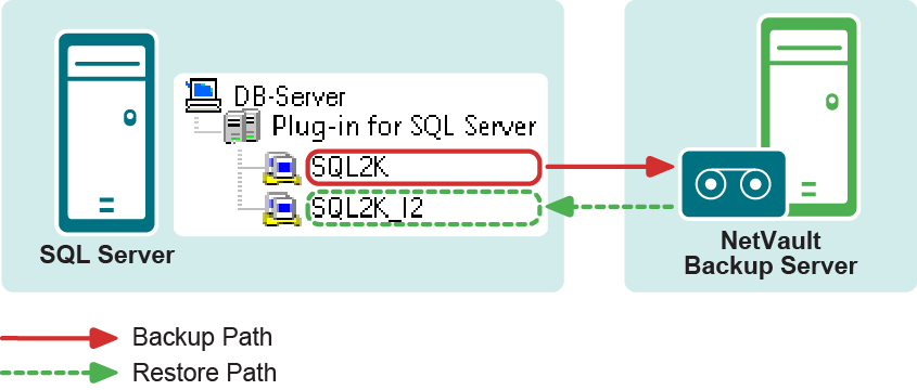 Logiciel NetVault Backup et Plug‑in pour SQL Server installés : vous devez installer et configurer la même version du logiciel NetVault Backup et du plug-in sur la nouvelle cible de restauration.