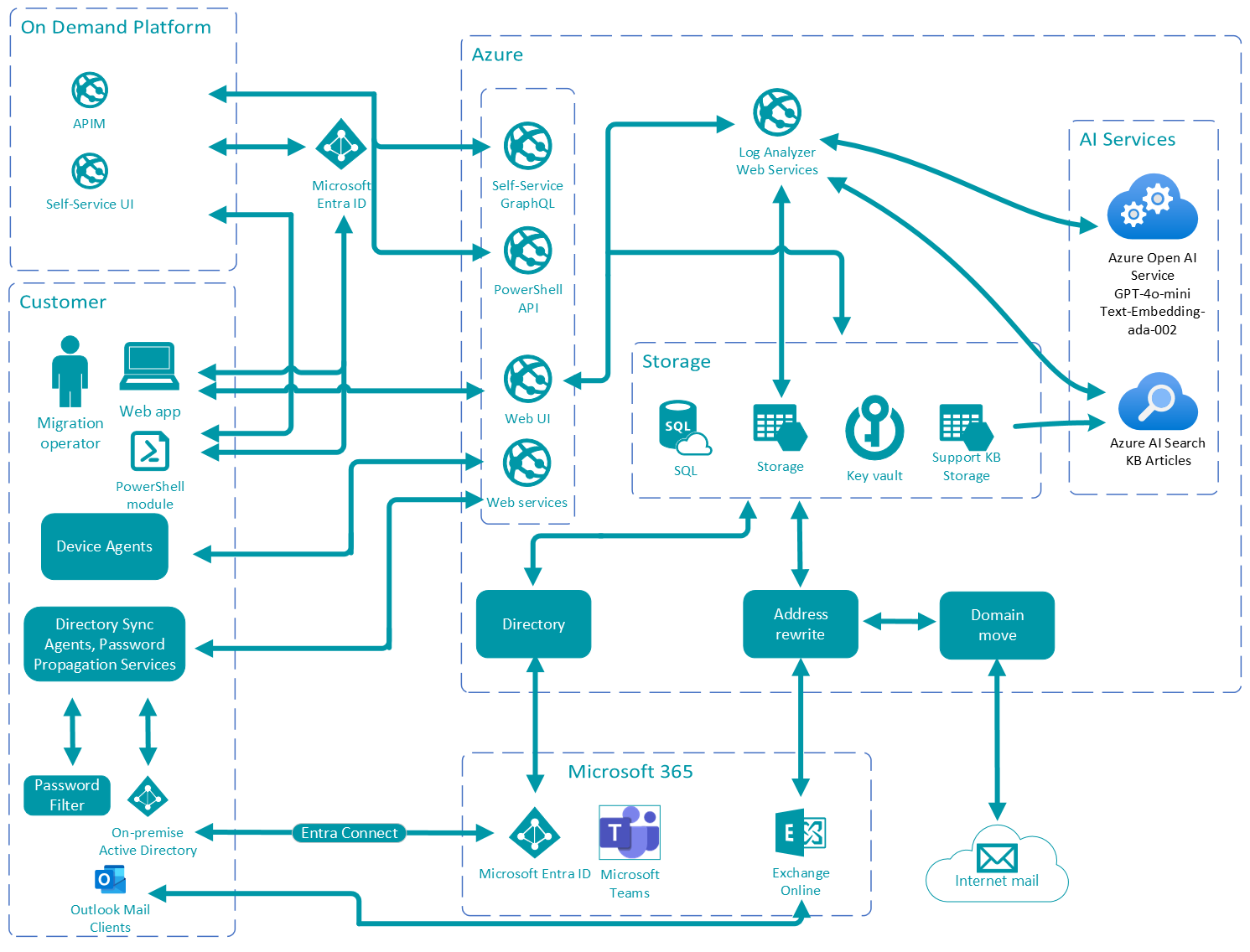 Quest On Demand Migration Self-Service (ODMSS) enables end users to schedule their own device migrations between EntraID or local Active Directory as an add-on feature for On Demand Migration Active Directory (ODMAD). This feature is optional and requires the Migration Administrators to configure the service.