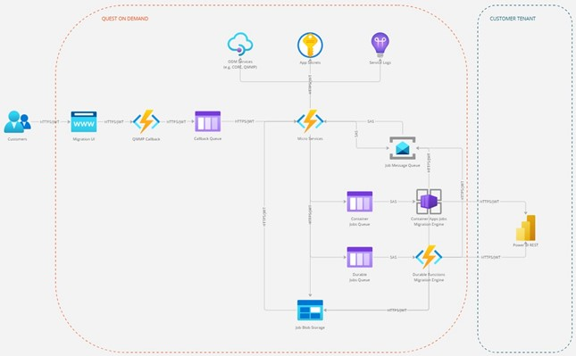 • Inter-service communication between On Demand Migration for Power BI components, On Demand Core and the On Demand Platform