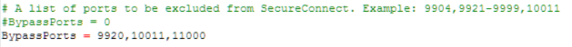 - Comment out the line BypassPorts = 9920, 10011, 11000 by adding a # to the front, then remove the # from BypassPorts = 0