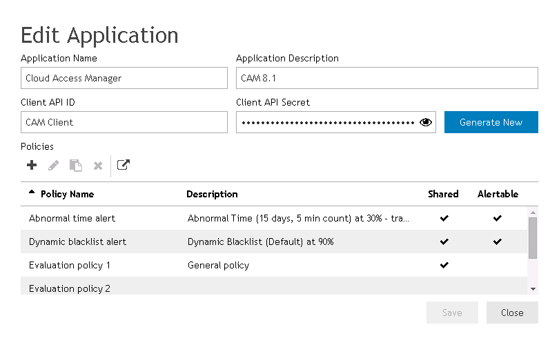 (Optional) To preview a selected shared risk policy, click the button. Click the Close button to close the preview and return to the Edit Application dialog.