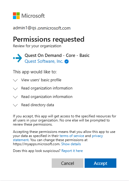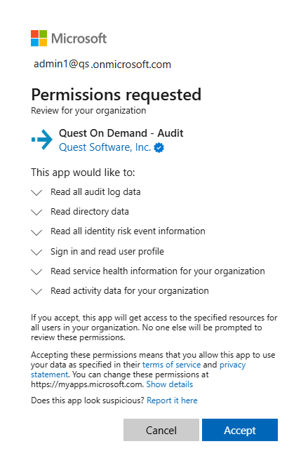 Security Guardian requires Admin Consent for Entra ID collections and access to the customer’s Microsoft Entra and Microsoft 365 tenants for auditing. The customer grants that access using the Microsoft Admin Consent process, which will create a Service Principal in the customer's Microsoft Entra ID with minimum consents required by On Demand (Groups, Users, Contacts).