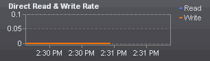 The Direct Read & Write Rate graph keeps track of unbuffered I/O generated by the application¾that is, reads and writes that do not involve the buffer pool, but directly access the database to manage large amounts of data and to perform utility functions.