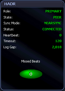 The HADR panel includes the Missed Beats component. This tracks the number of heartbeats missed on an HADR connection since the last refresh of the Spotlight interface. It lights up each time a heartbeat is missed.