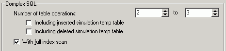 Specify the number of table references in the query plan for Complex SQL statements. Checkboxes are available to indicate whether you want the inserted and deleted simulated temp tables to be included in this table range.