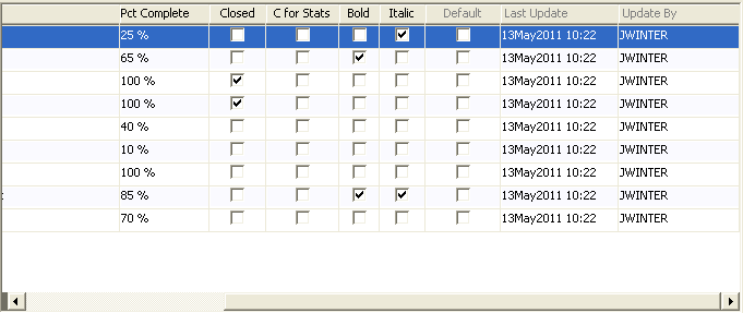 These fields are used when the possible values are limited to a specific set. Often times, these lists link back to another table. For example, when specifying a customer value, you must select a department from a list previously defined in the Department Maintenance table.