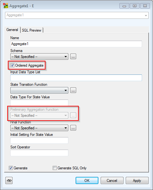 Ordered Aggregate option added. If selected, Preliminary Aggregation Function is disabled and when applied (OK/Apply), the combo box is set to value -- Not Specified --.