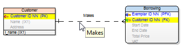 TIP: When you point your mouse cursor at a relationship line, parent and child attributes are highlighted on the Workspace. You can set the color at: Settings | Options | Graphics | Colors area | Highlight Color.