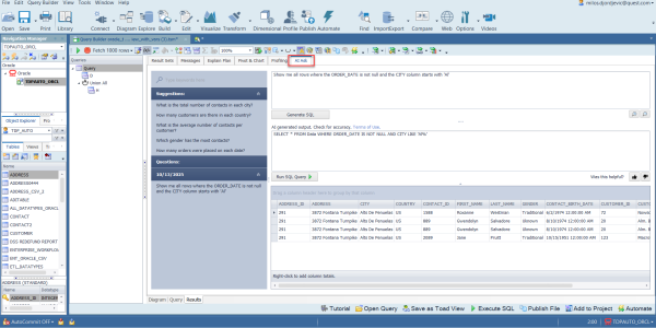 For more details, see the AI Ask – Enhanced Data Querying with AI section of the Toad Data Point User Guide.