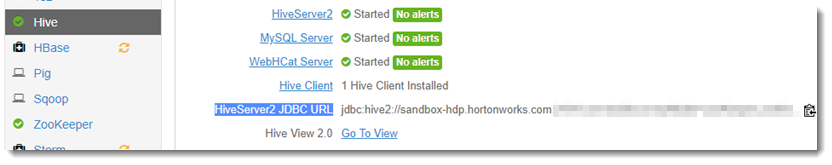 Toad Data Point does not use JDBC for connecting to Hive, so do not use HiveServer2 JDBC URL here. Do not use the URL and port information below in Toad Data Point HIVE connection.
